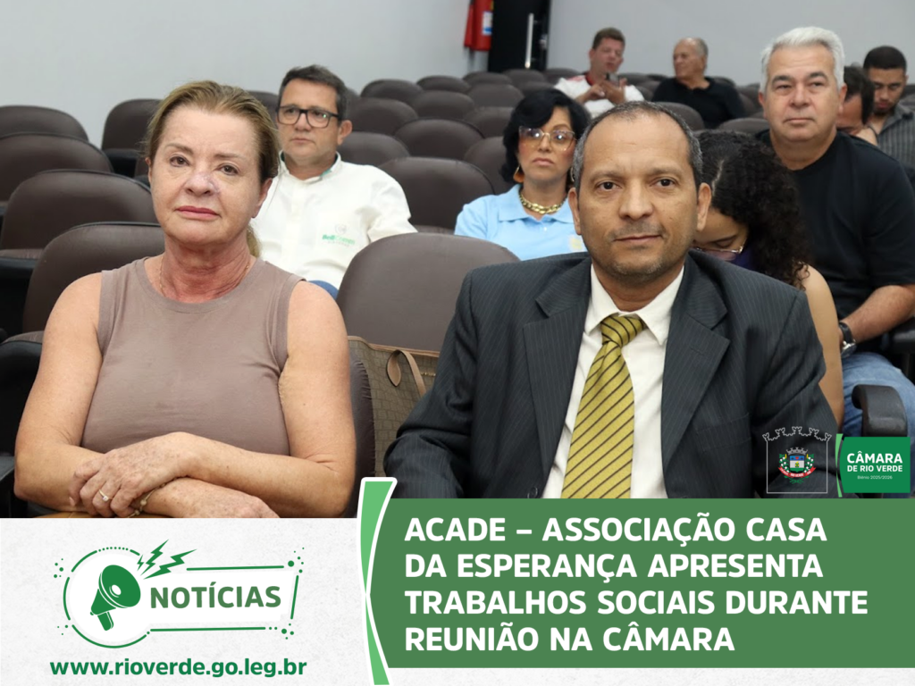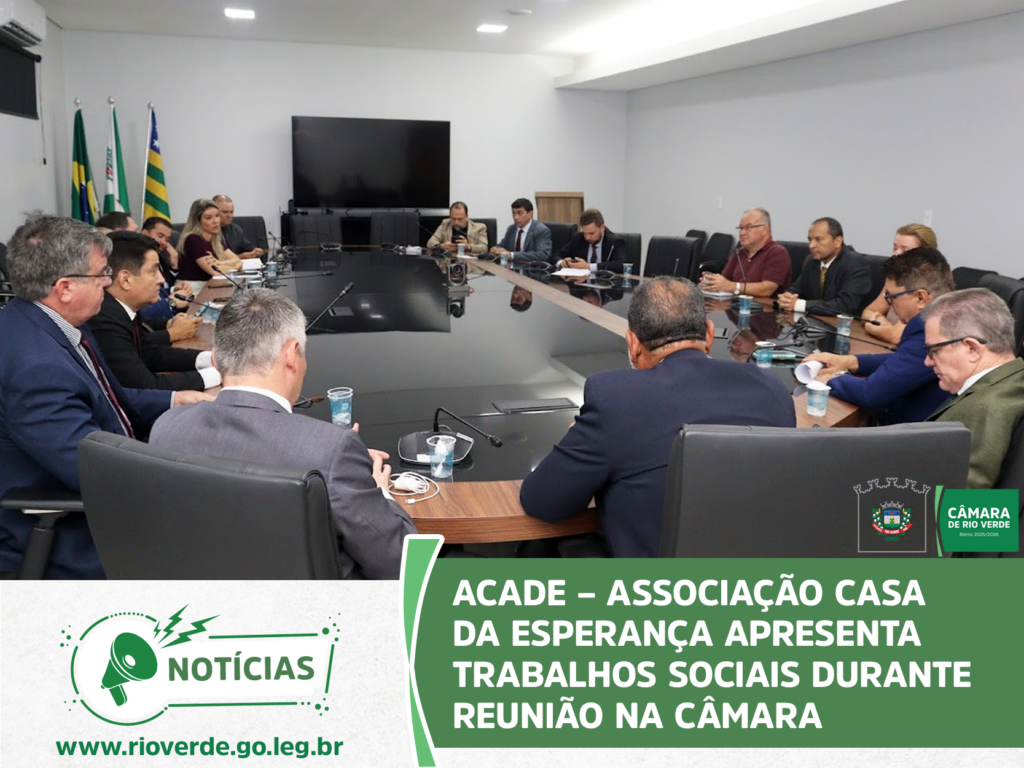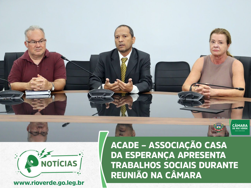 A Câmara Municipal de Rio Verde recebeu, na noite desta segunda-feira (10), representantes da ACADE – Associação Casa da Esperança, em reunião realizada momentos antes do início da sessão ordinária.