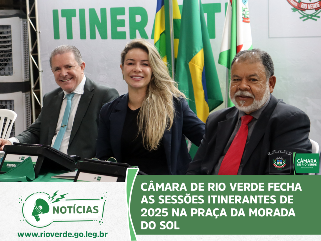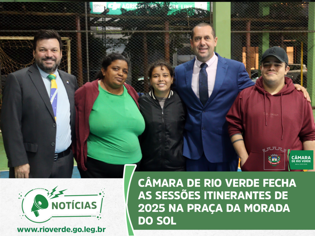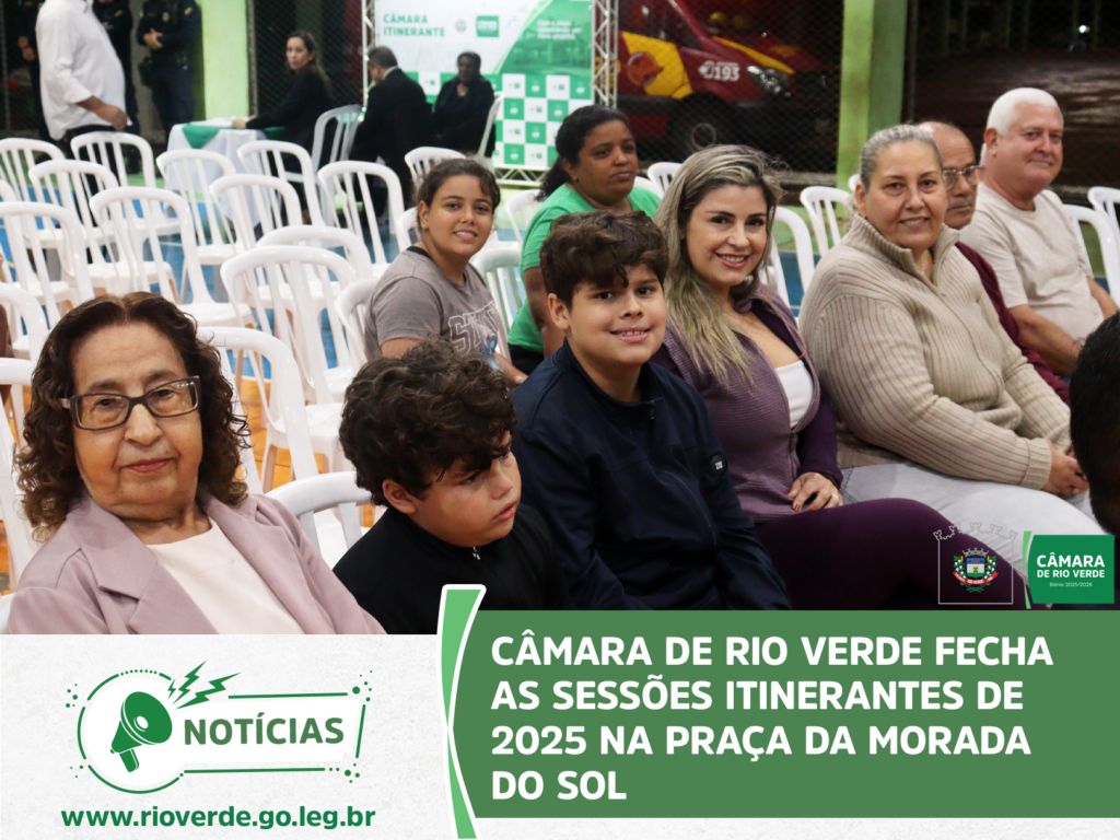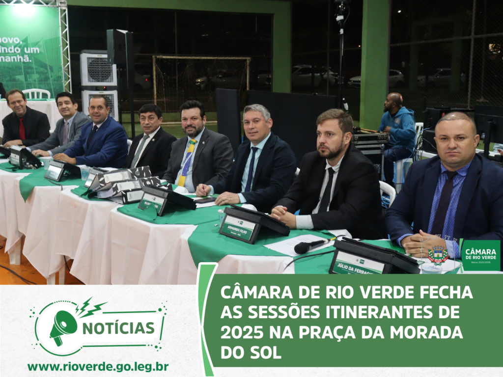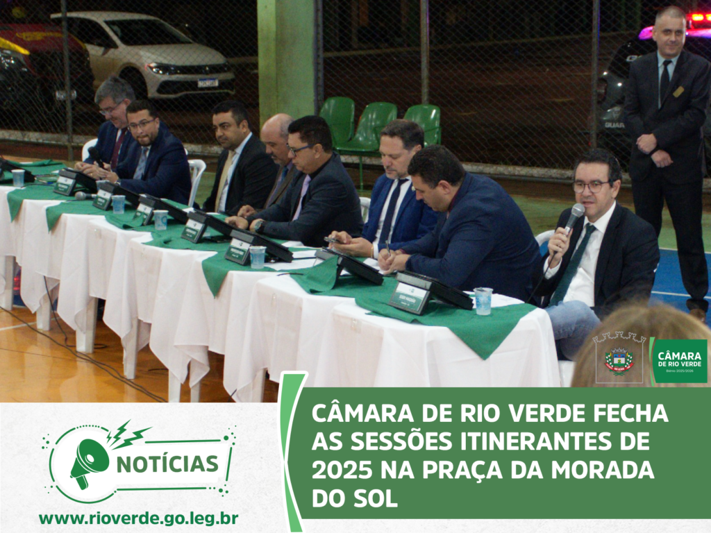 A Câmara Municipal de Rio Verde realizou na noite de terça-feira, 09 de dezembro, a última sessão itinerante de 2025. A atividade ocorreu na praça Carolina Leão Veloso, no Conjunto Morada do Sol, e mesmo com o tempo chuvoso contou com a presença de moradores que acompanharam os debates e o andamento dos trabalhos legislativos.
