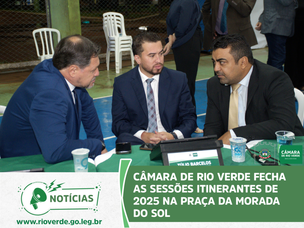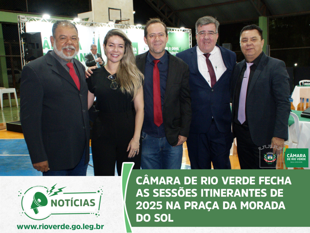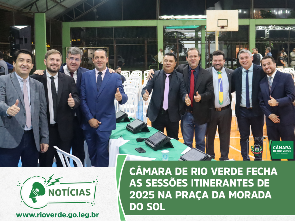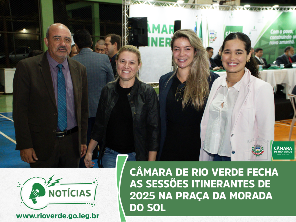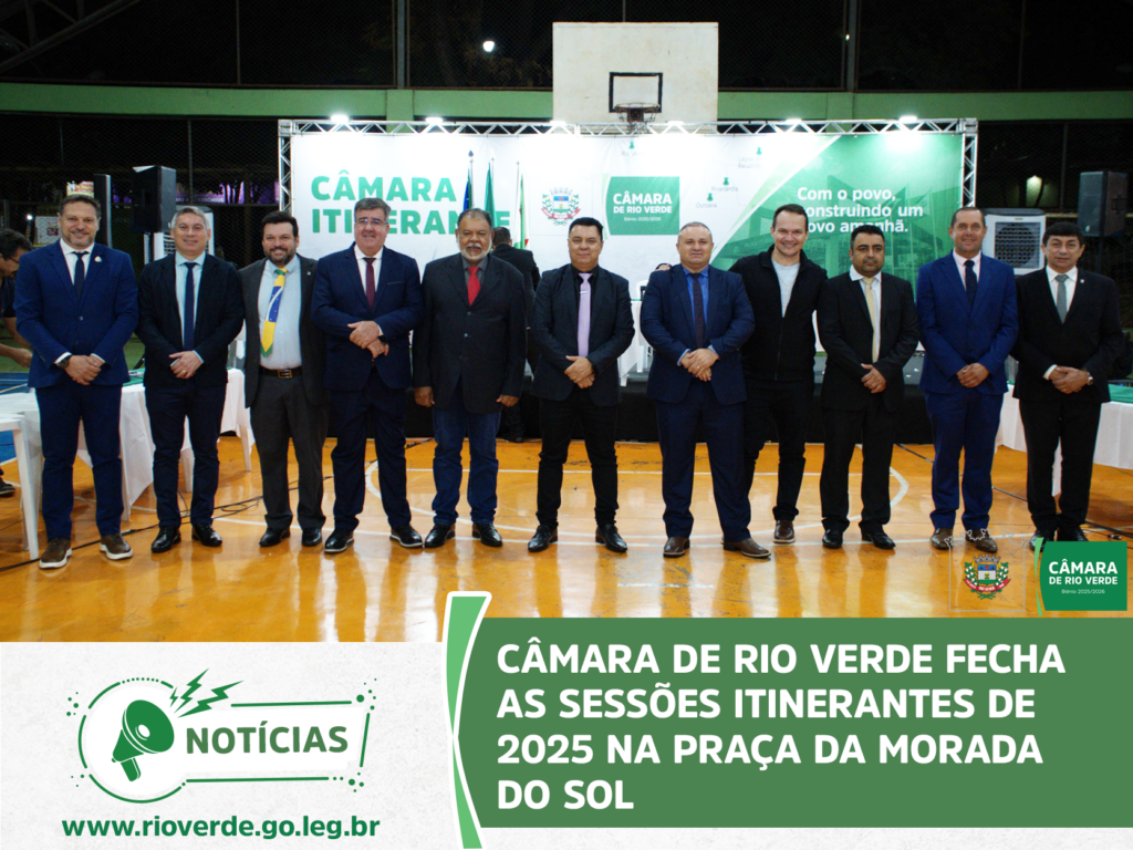 A Câmara Municipal de Rio Verde realizou na noite de terça-feira, 09 de dezembro, a última sessão itinerante de 2025. A atividade ocorreu na praça Carolina Leão Veloso, no Conjunto Morada do Sol, e mesmo com o tempo chuvoso contou com a presença de moradores que acompanharam os debates e o andamento dos trabalhos legislativos.