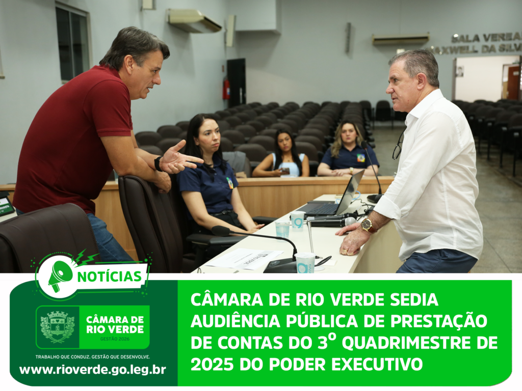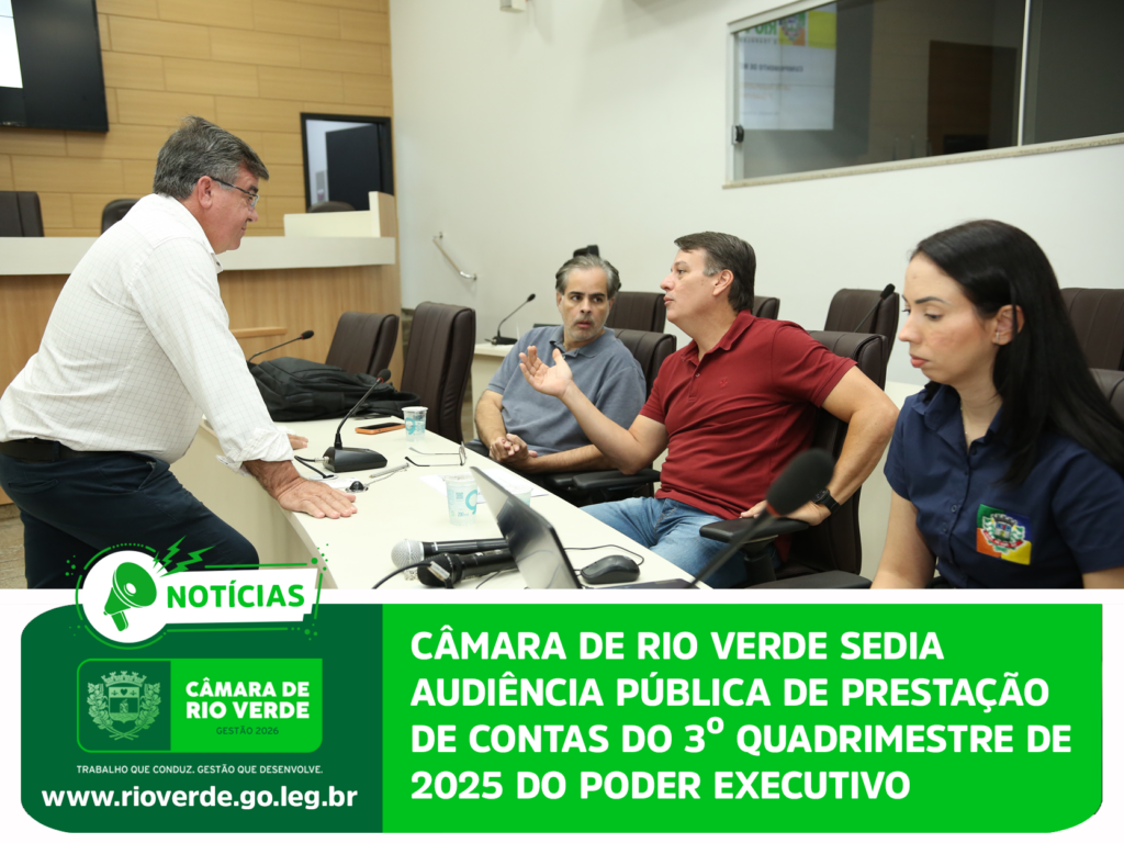 A Prefeitura de Rio Verde realizou, na manhã desta quinta-feira, 26 de fevereiro, no plenário da Câmara Municipal, audiência pública para demonstração e avaliação do cumprimento das metas fiscais do 3º quadrimestre de 2025.