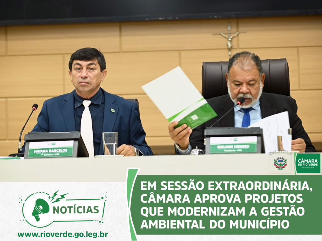Na manhã desta sexta-feira, 10 de outubro, a Câmara Municipal de Rio Verde realizou sessões extraordinárias para apreciação de dois importantes projetos de lei voltados à gestão ambiental do município.