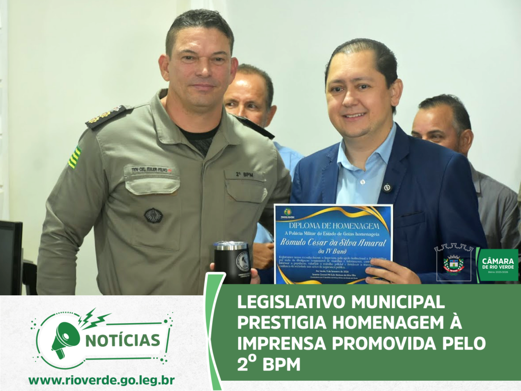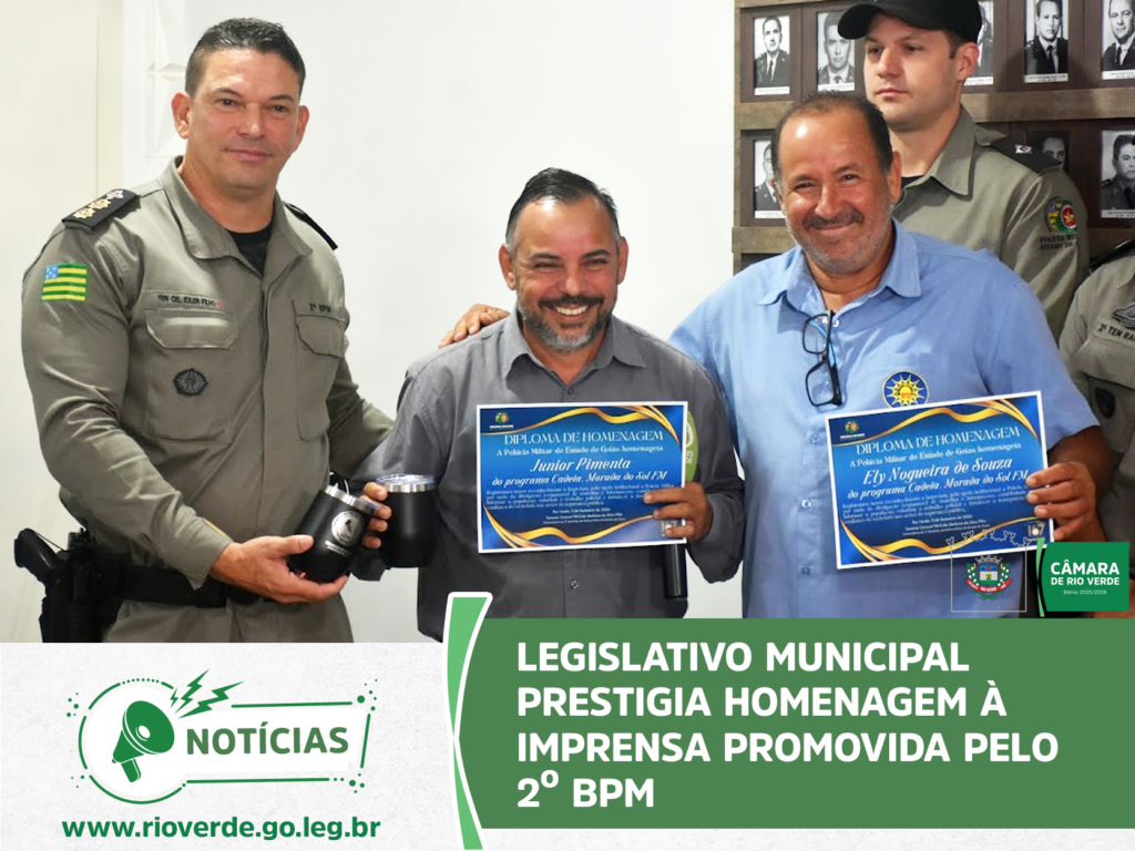 O presidente interino da Câmara Municipal de Rio Verde, Cabo Moraes, acompanhado dos vereadores Prof. Leonardo Lacraia e Chico KGL, participou na manhã desta quarta-feira (11) de um encontro promovido pelo comandante do 2º Batalhão da Polícia Militar, TC Euler Filho, que reuniu autoridades e profissionais da imprensa local em um momento de reconhecimento e diálogo institucional. A iniciativa teve como objetivo fortalecer a aproximação entre a corporação e os veículos de comunicação, responsáveis por levar informação à população.