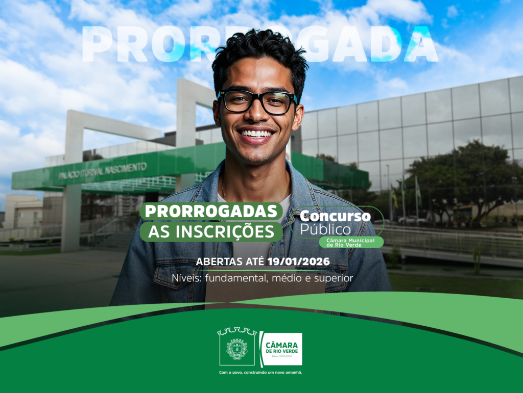 A Câmara de Rio Verde informa que as inscrições de seu Concurso Público foram prorrogadas.
