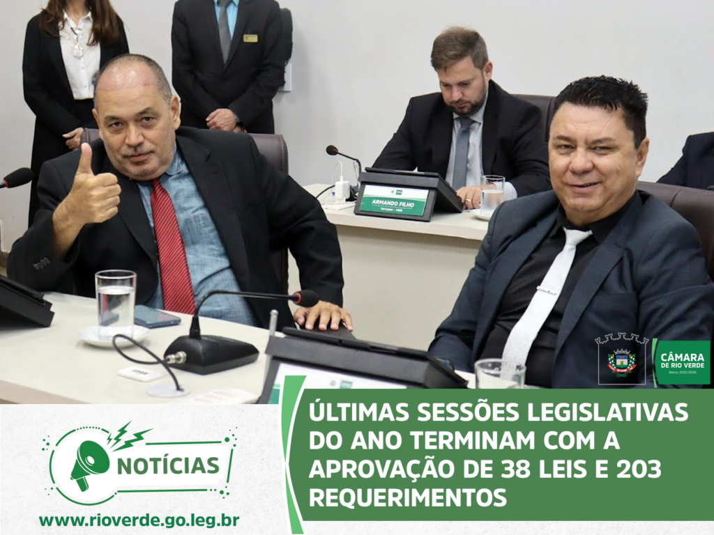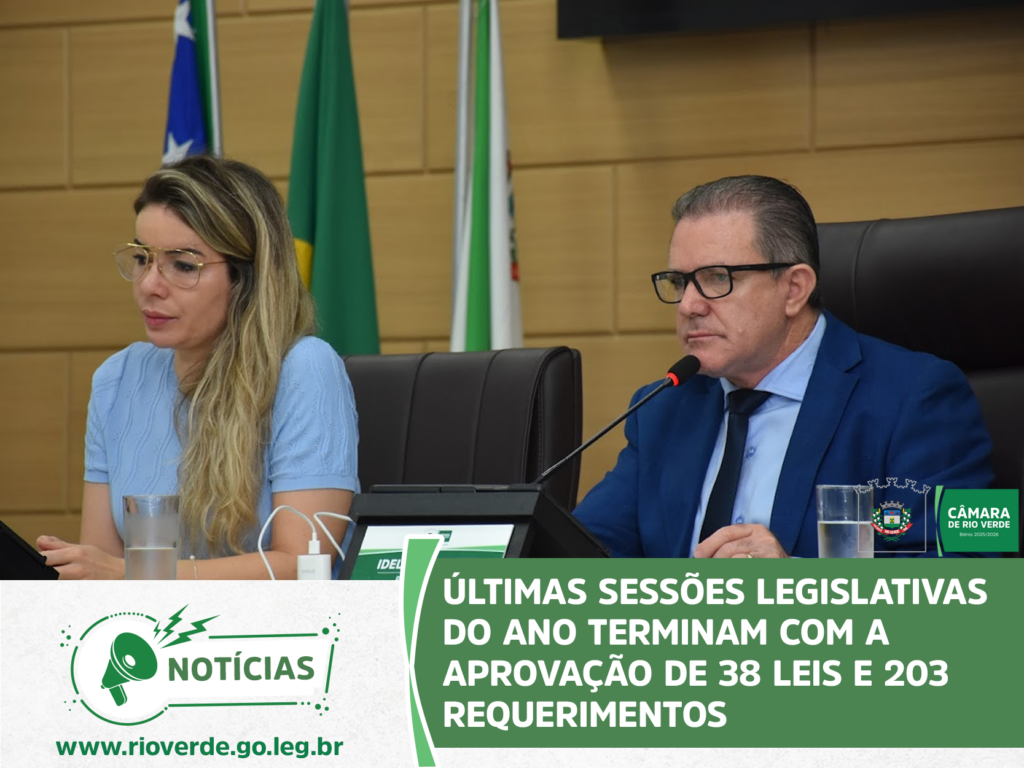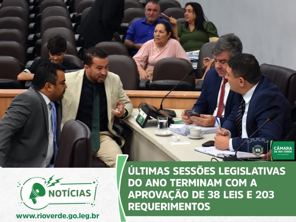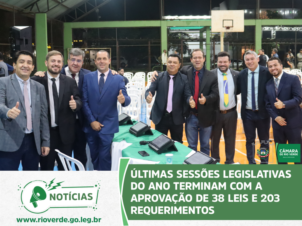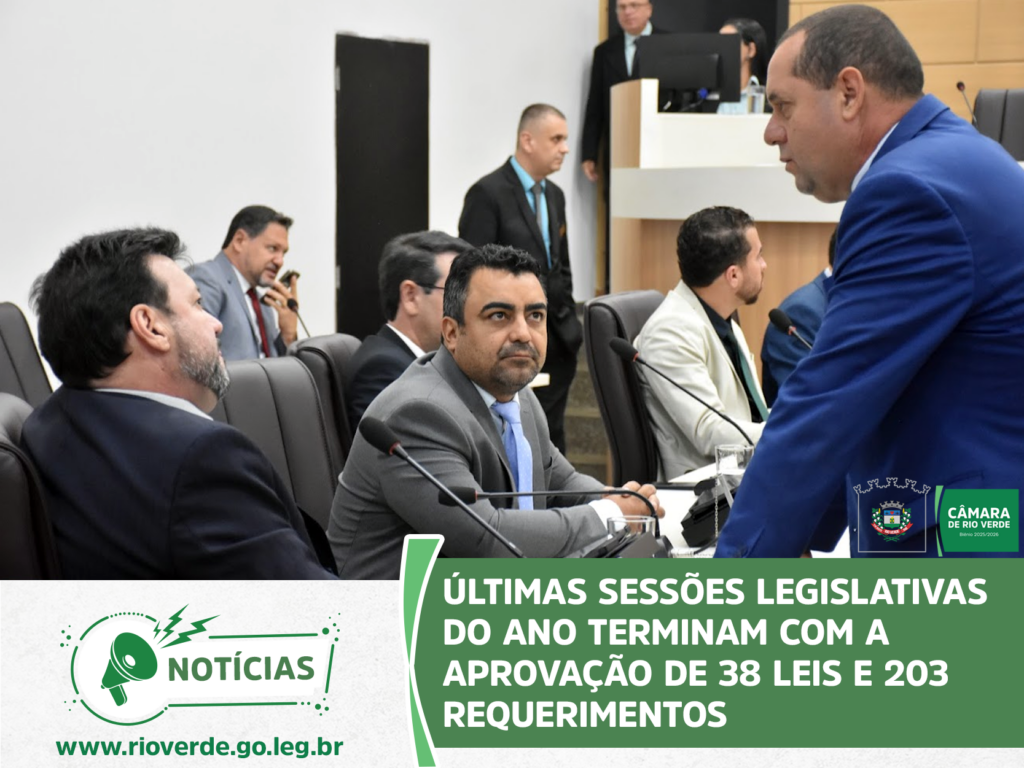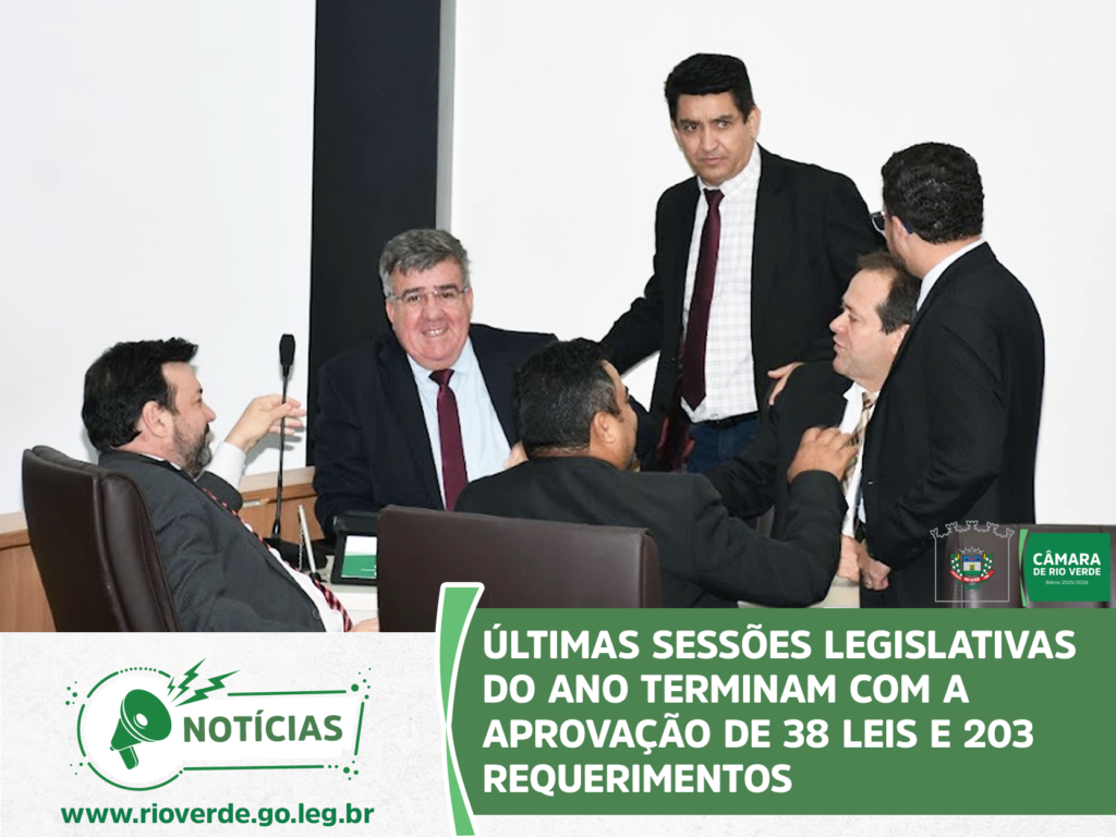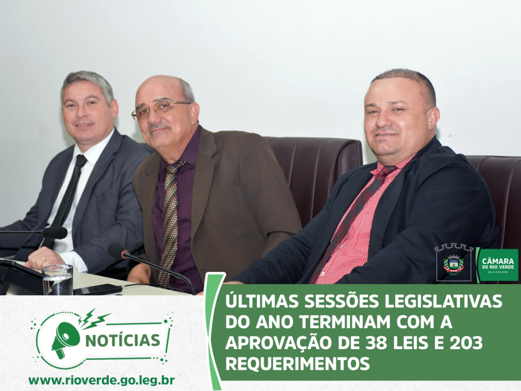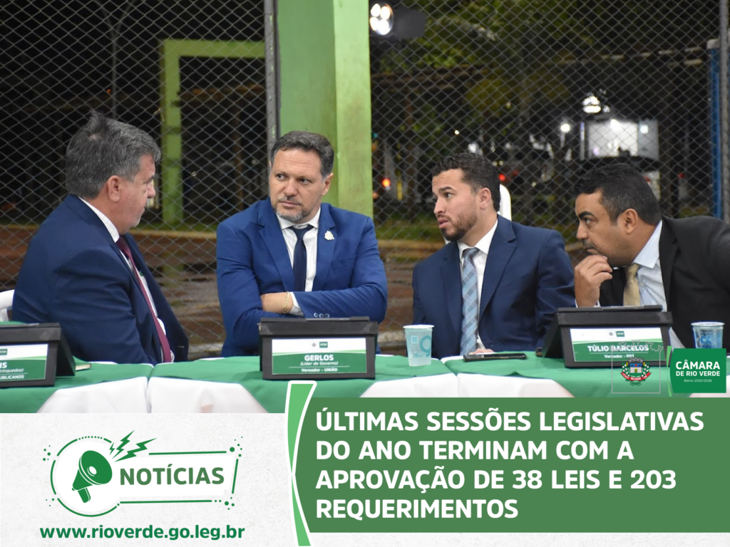 Ao final da sessão, o presidente Idelson Mendes agradeceu aos parlamentares e servidores da Casa pelo ano de muito trabalho, desejou à população rio-verdense um Feliz Natal e um Próspero Ano Novo e convidou todos para a próxima sessão ordinária, que abrirá os trabalhos de 2026 e será realizada no dia 9 de fevereiro, às 19 horas, no Plenário da Câmara Municipal.