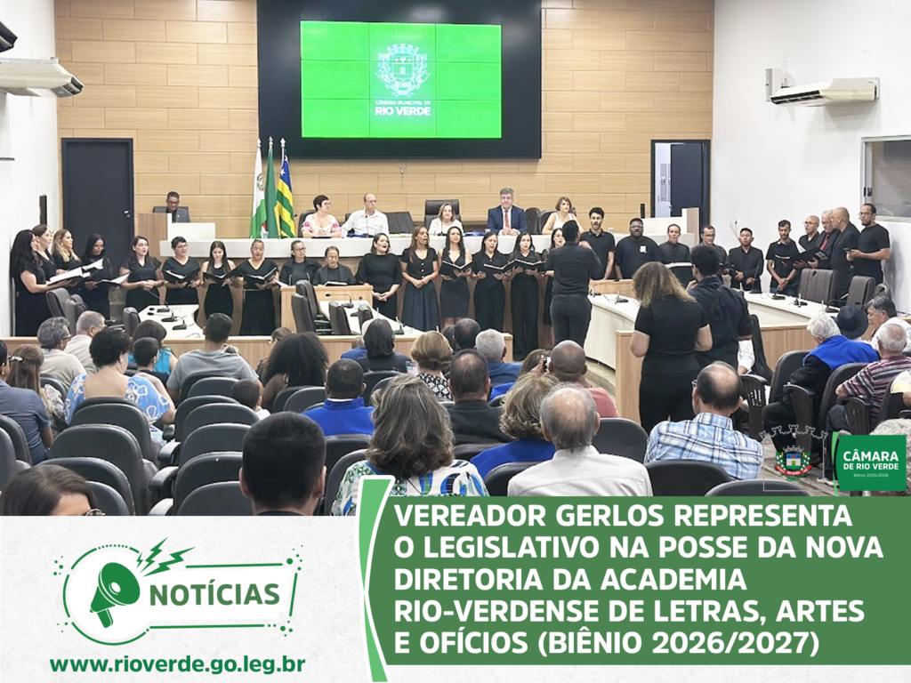 A Câmara Municipal de Rio Verde foi palco, na noite desta quarta-feira, 03 de dezembro, da cerimônia de posse da nova diretoria da Academia Rio-verdense de Letras, Artes e Ofícios (ARLAO). O evento reuniu autoridades, representantes de instituições culturais e convidados para celebrar a continuidade das ações voltadas ao fortalecimento da arte, da literatura e da memória cultural do município.