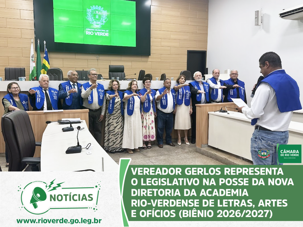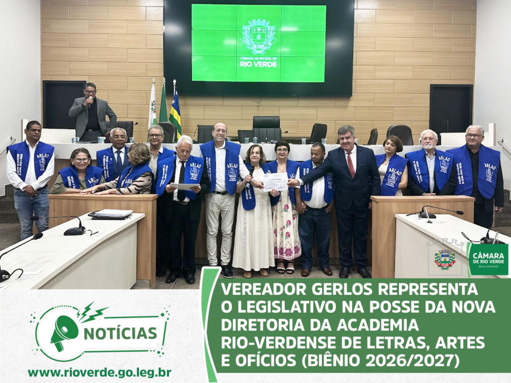 VEREADOR GERLOS REPRESENTA O LEGISLATIVO NA POSSE DA NOVA DIRETORIA DA ACADEMIA RIO-VERDENSE DE LETRAS, ARTES E OFÍCIOS (BIÊNIO 2026/2027)