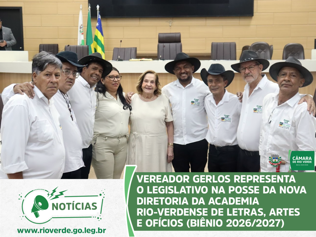 VEREADOR GERLOS REPRESENTA O LEGISLATIVO NA POSSE DA NOVA DIRETORIA DA ACADEMIA RIO-VERDENSE DE LETRAS, ARTES E OFÍCIOS (BIÊNIO 2026/2027)