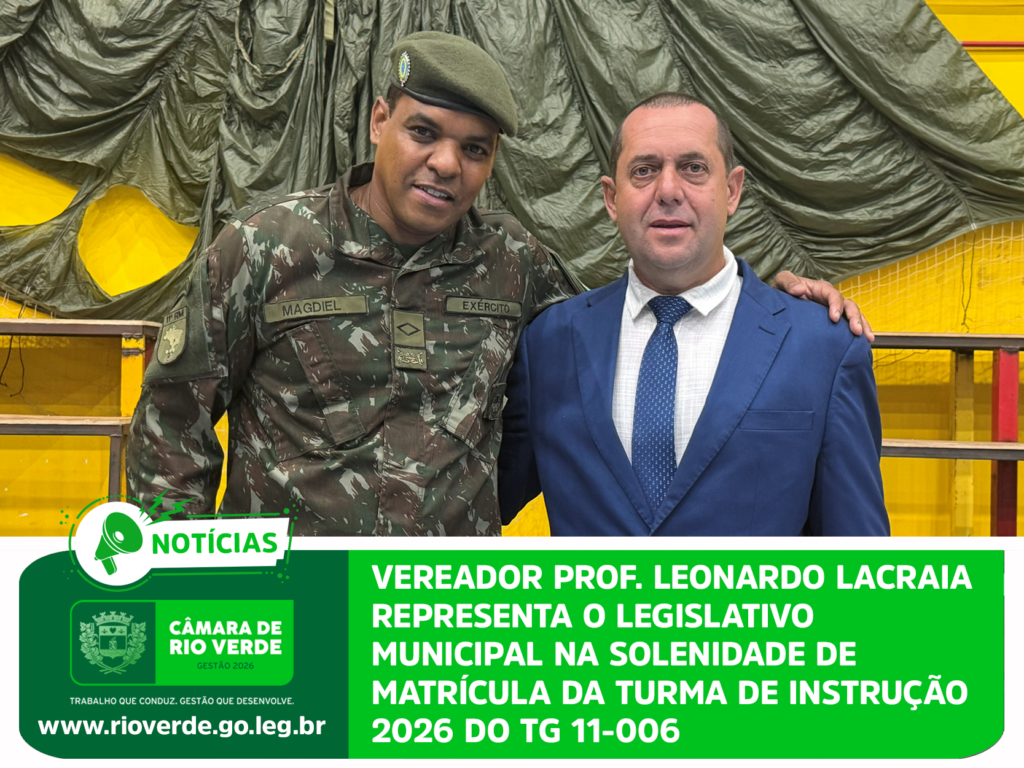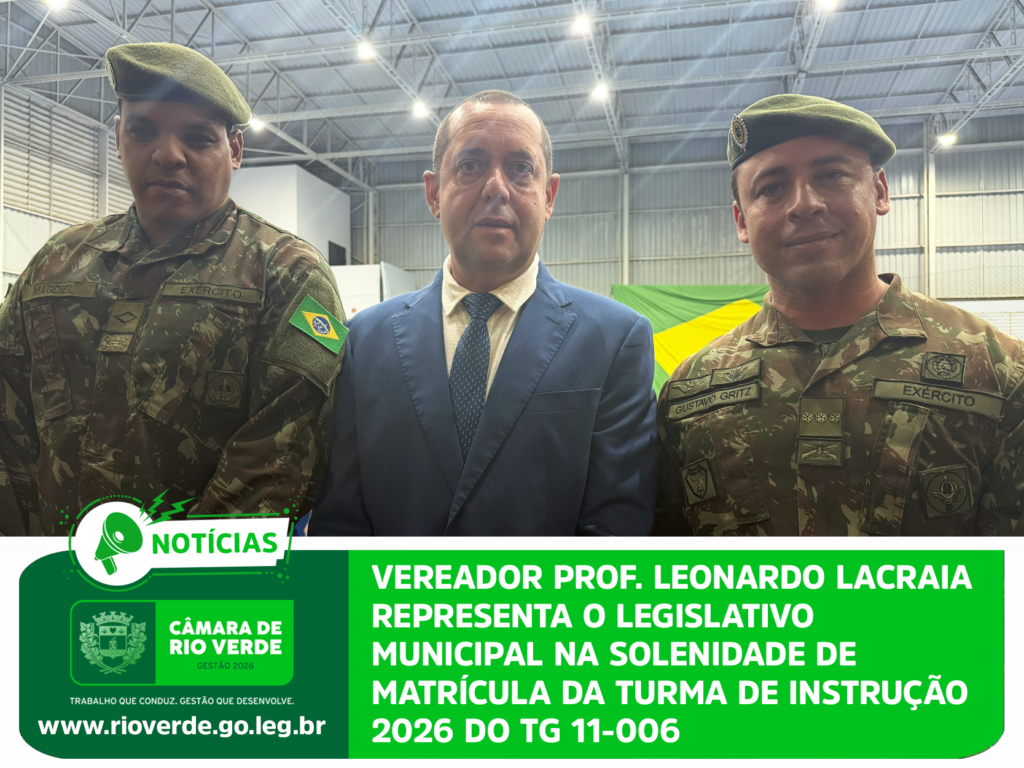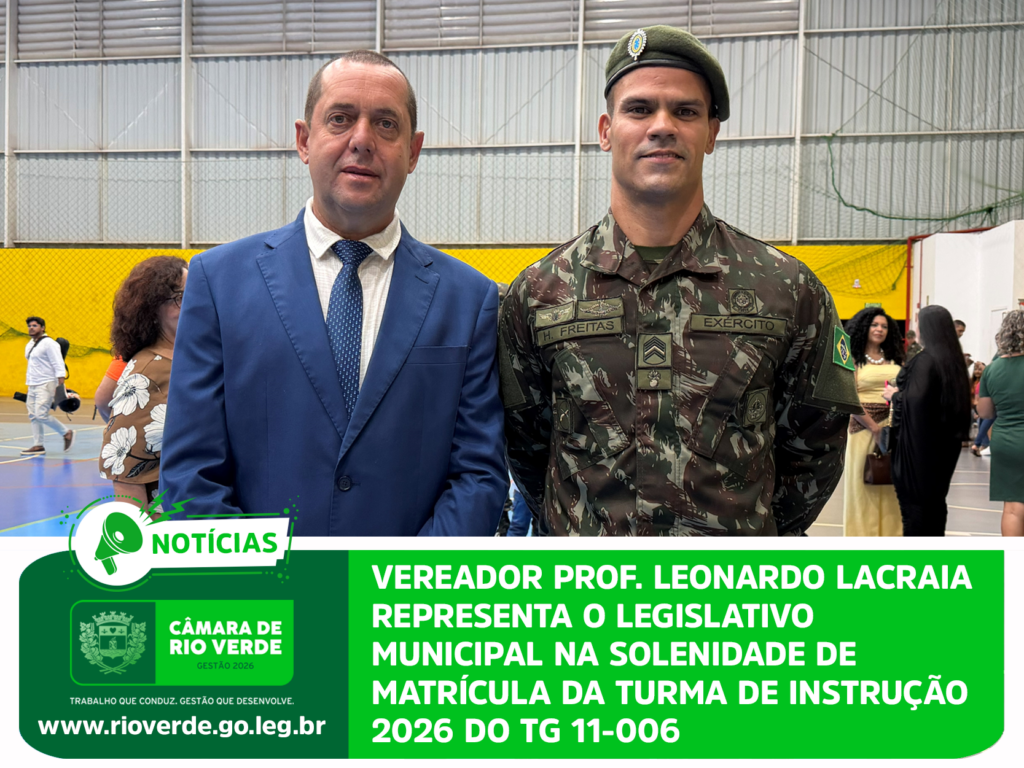 VEREADOR PROF. LEONARDO LACRAIA REPRESENTA O LEGISLATIVO MUNICIPAL NA SOLENIDADE DE MATRÍCULA DA TURMA DE INSTRUÇÃO 2026 DO TG 11-006