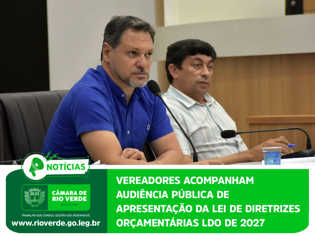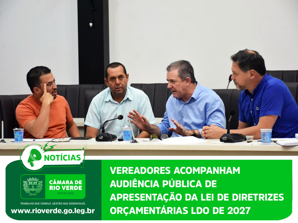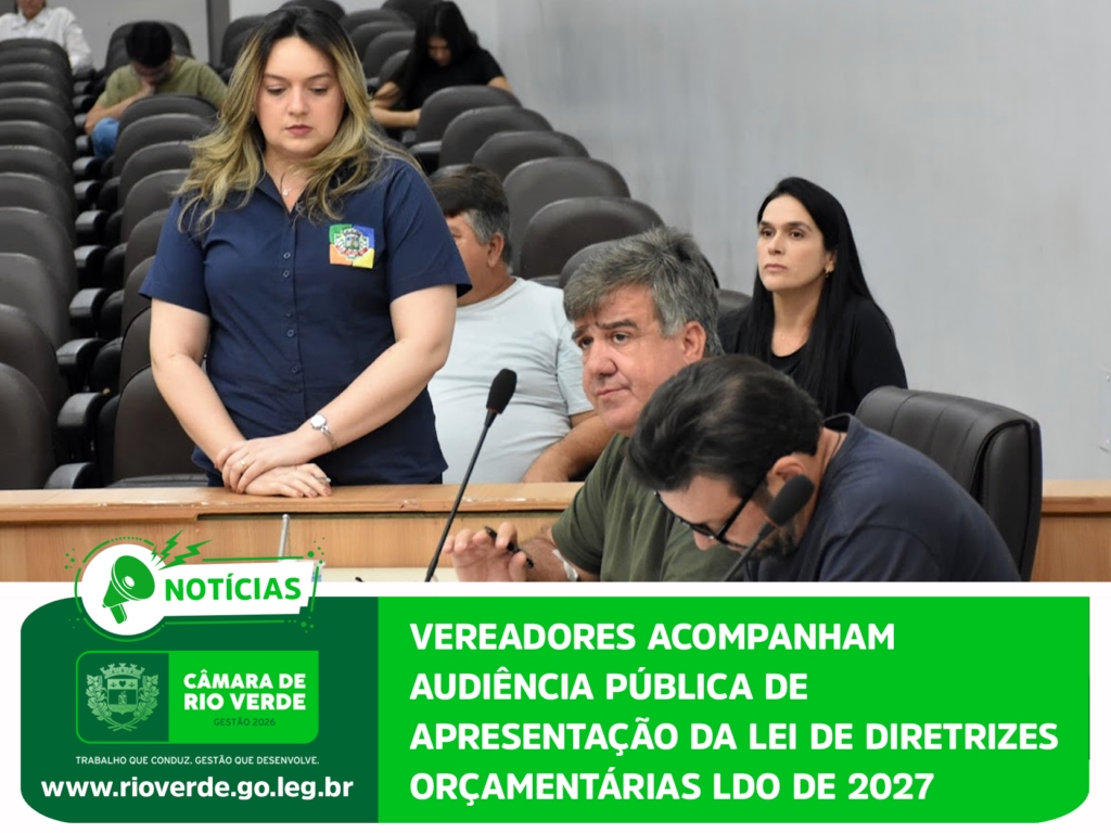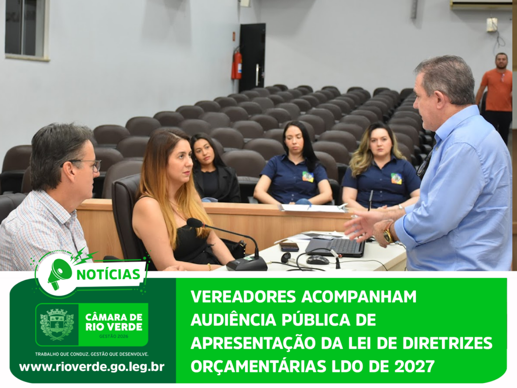 A Câmara Municipal de Rio Verde foi palco, na tarde desta segunda-feira, 13 de abril, de uma audiência pública, promovida pela Poder Executivo, para apresentação do Projeto de Lei de Diretrizes Orçamentárias para o exercício de 2027.
