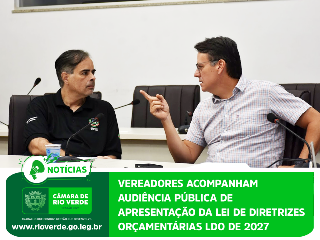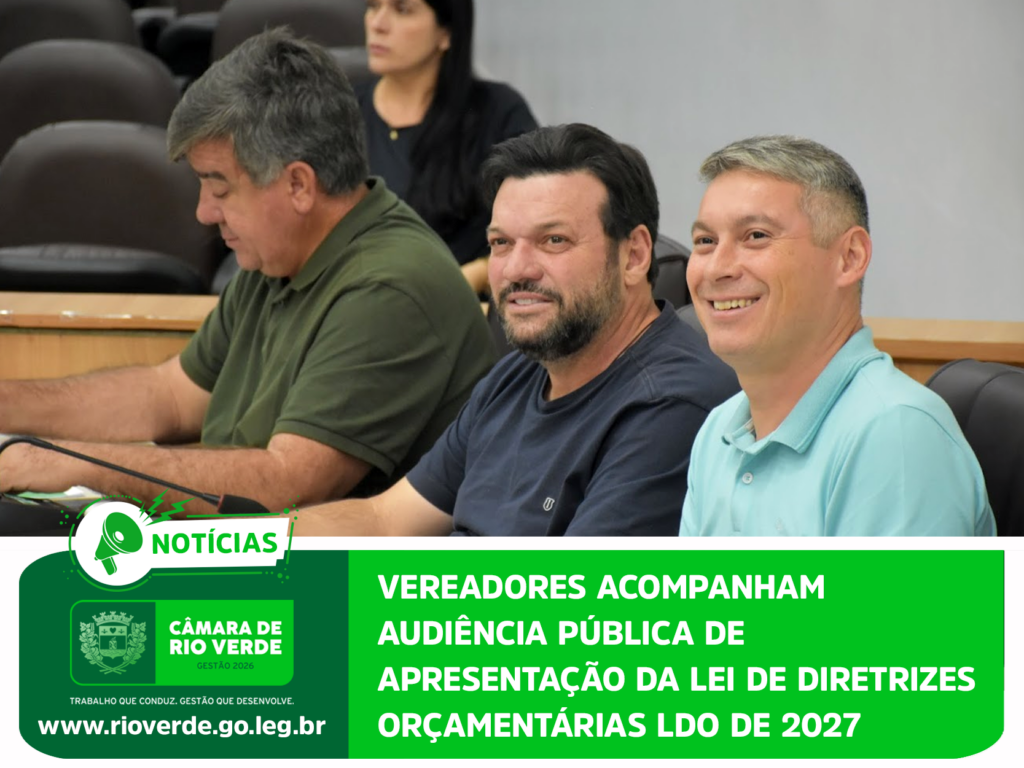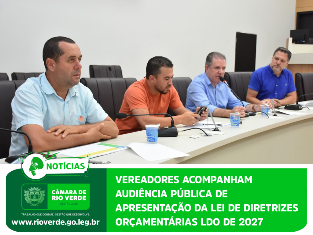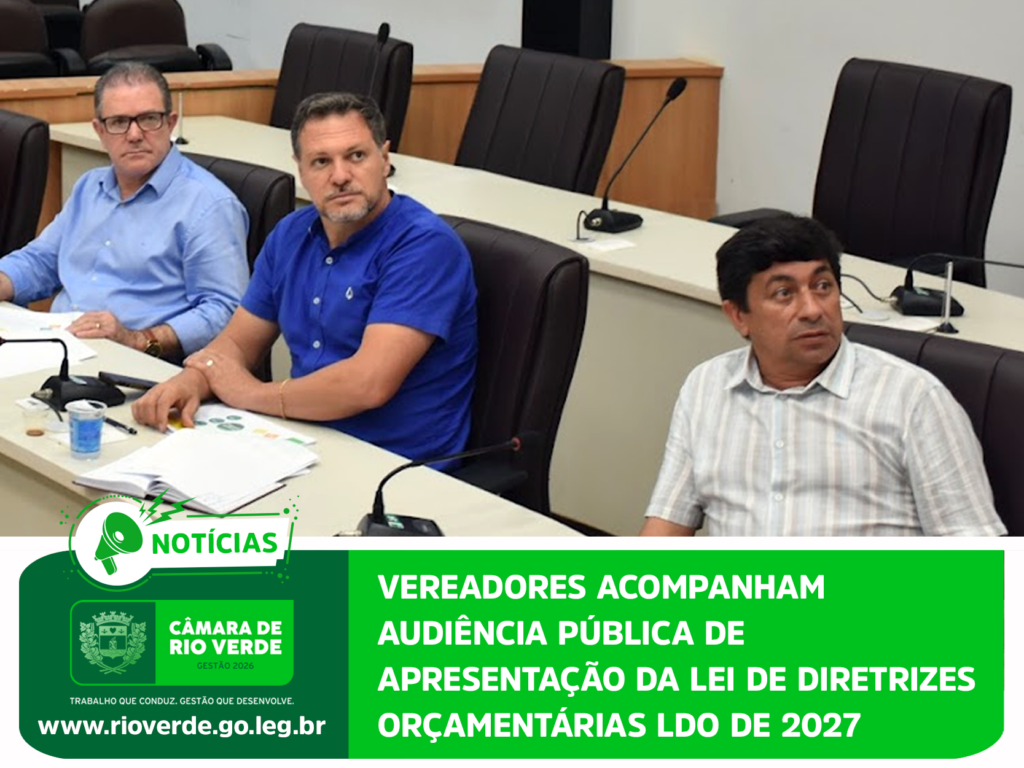 A Câmara Municipal de Rio Verde foi palco, na tarde desta segunda-feira, 13 de abril, de uma audiência pública, promovida pela Poder Executivo, para apresentação do Projeto de Lei de Diretrizes Orçamentárias para o exercício de 2027.