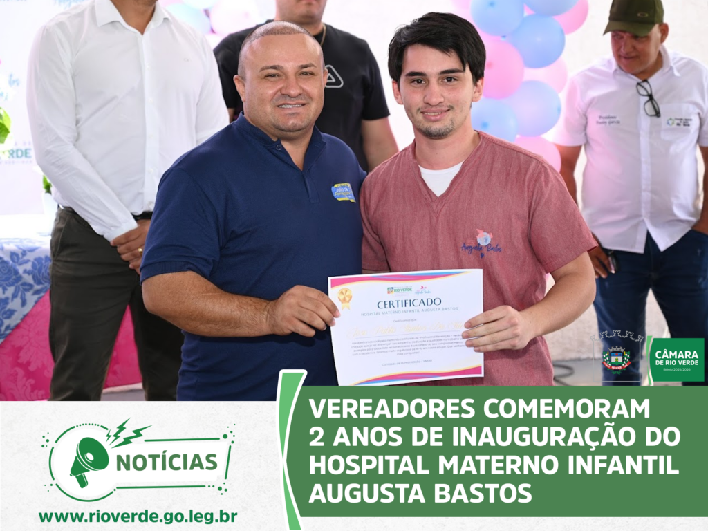 VEREADORES COMEMORAM 2 ANOS DE INAUGURAÇÃO DO HOSPITAL MATERNO INFANTIL AUGUSTA BASTOS