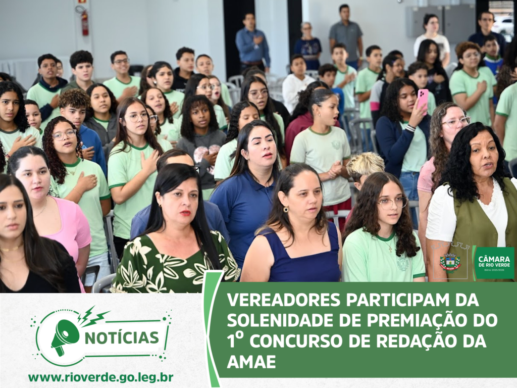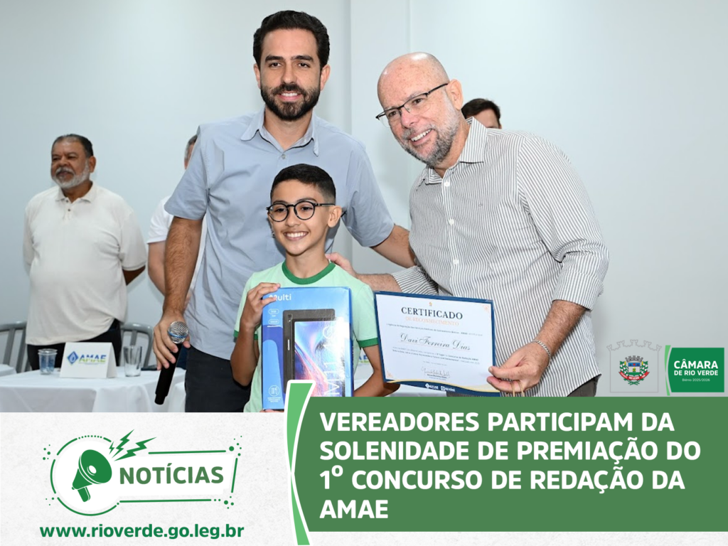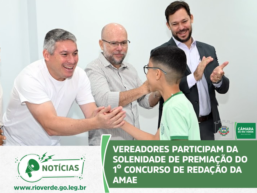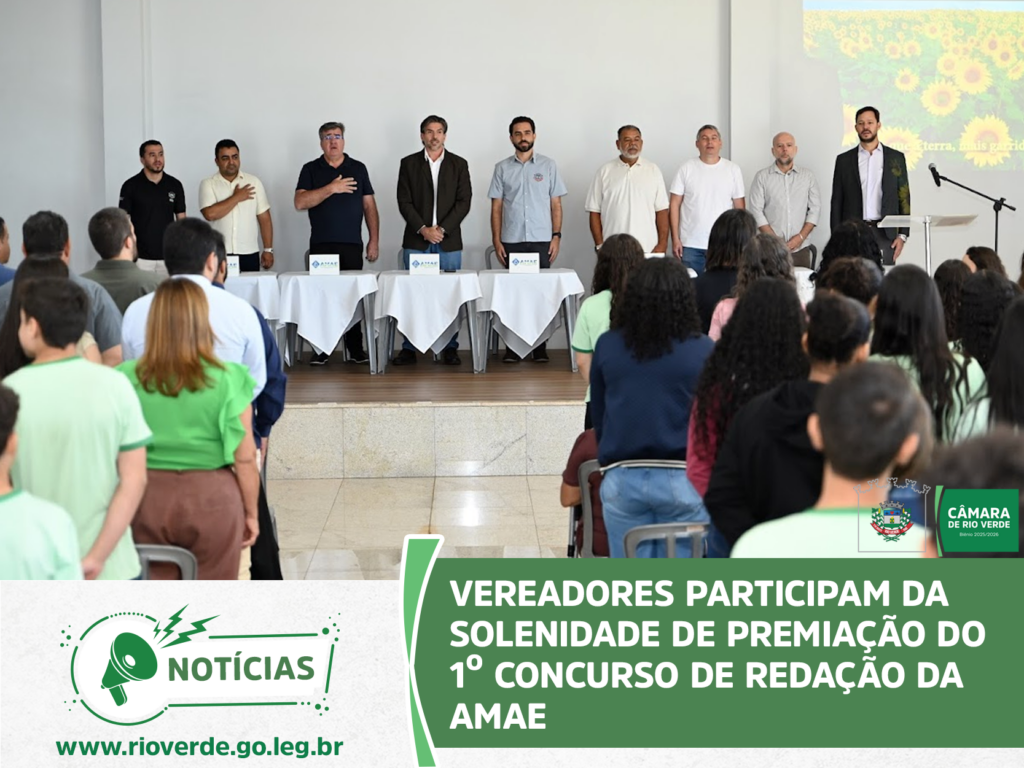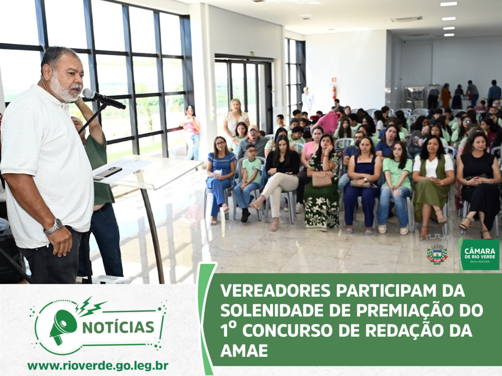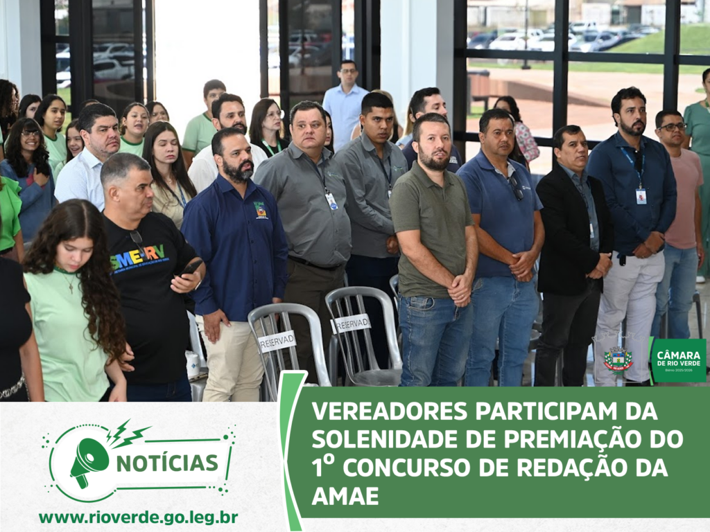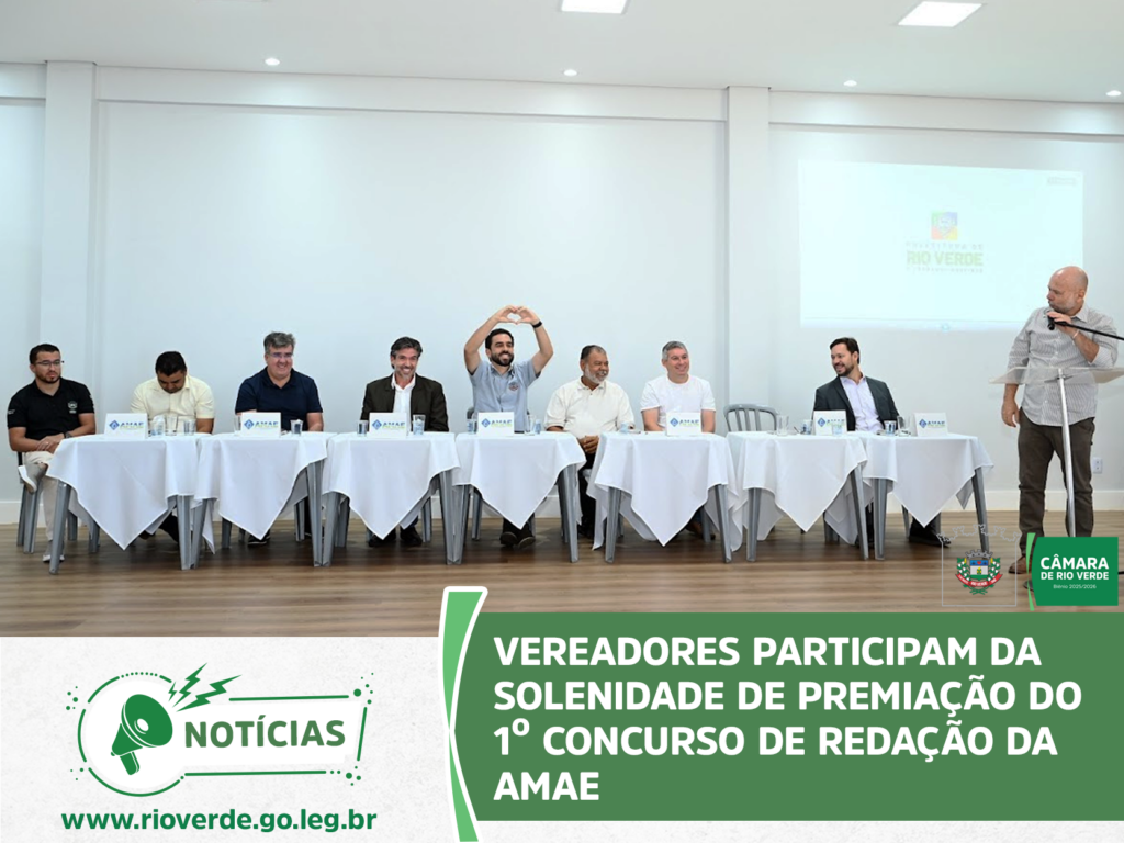 A Câmara Municipal de Rio Verde marcou presença na solenidade de premiação do 1º Concurso de Redação da AMAE, realizada na manhã desta quarta-feira, 19 de novembro, no auditório do Paço Municipal. O evento celebrou o encerramento da iniciativa “Gota a Gota, Letra a Letra – Escrevendo o Futuro com Saneamento”, que envolveu alunos do 7º ano de quatro escolas da rede municipal.
