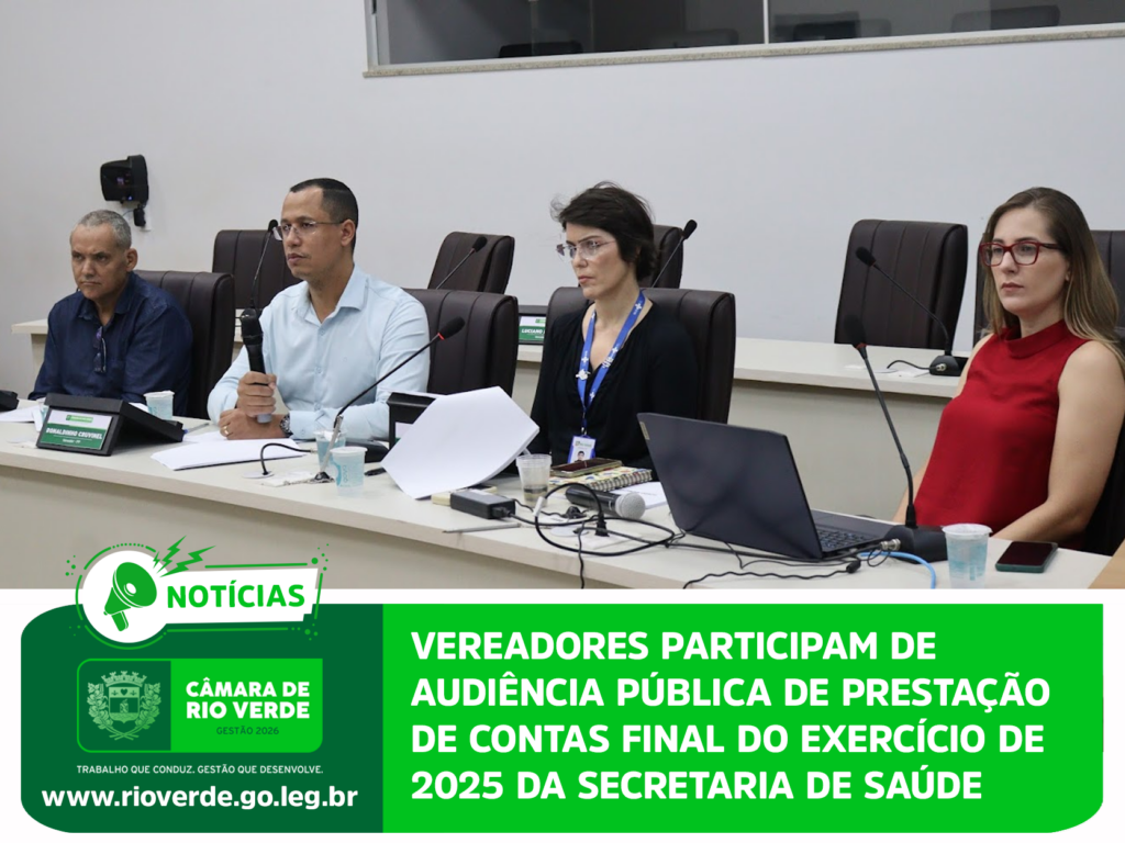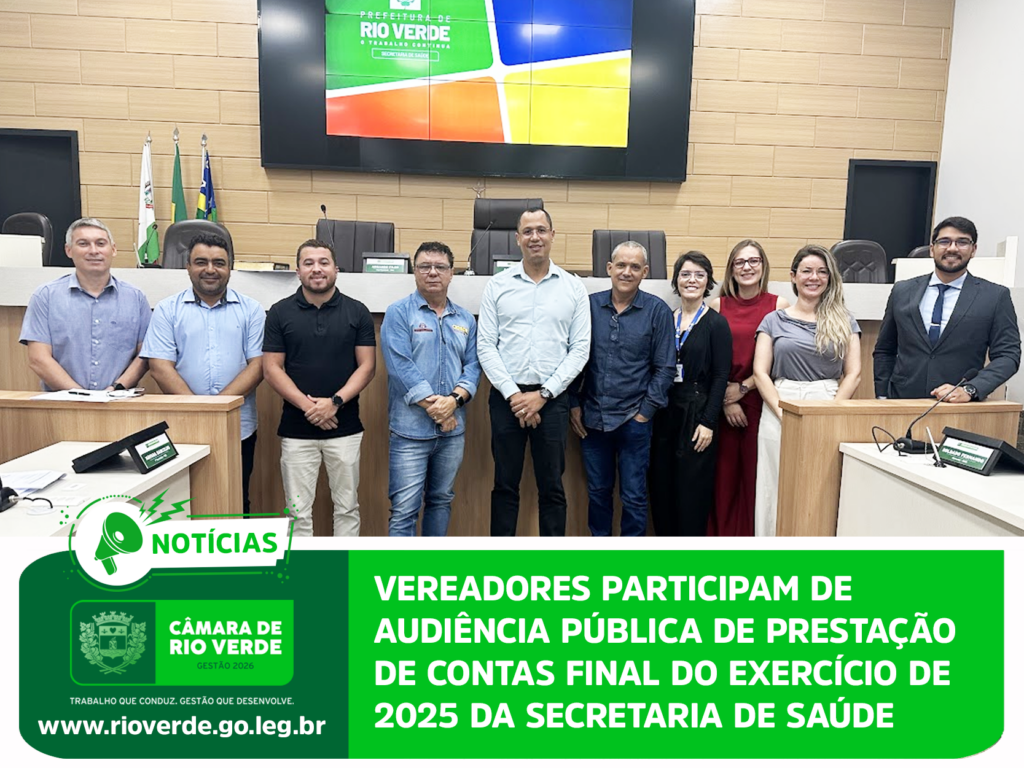 Em cumprimento à Lei de Responsabilidade Fiscal, a Secretaria Municipal de Saúde realizou, na manhã desta quinta-feira, 26 de fevereiro, no plenário da Câmara Municipal de Rio Verde, audiência pública para demonstração e avaliação do cumprimento das metas fiscais referentes ao 3º quadrimestre de 2025 da pasta.