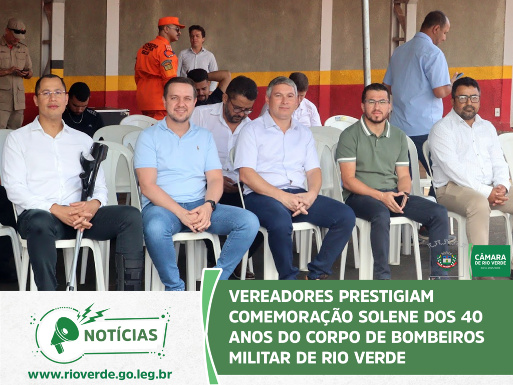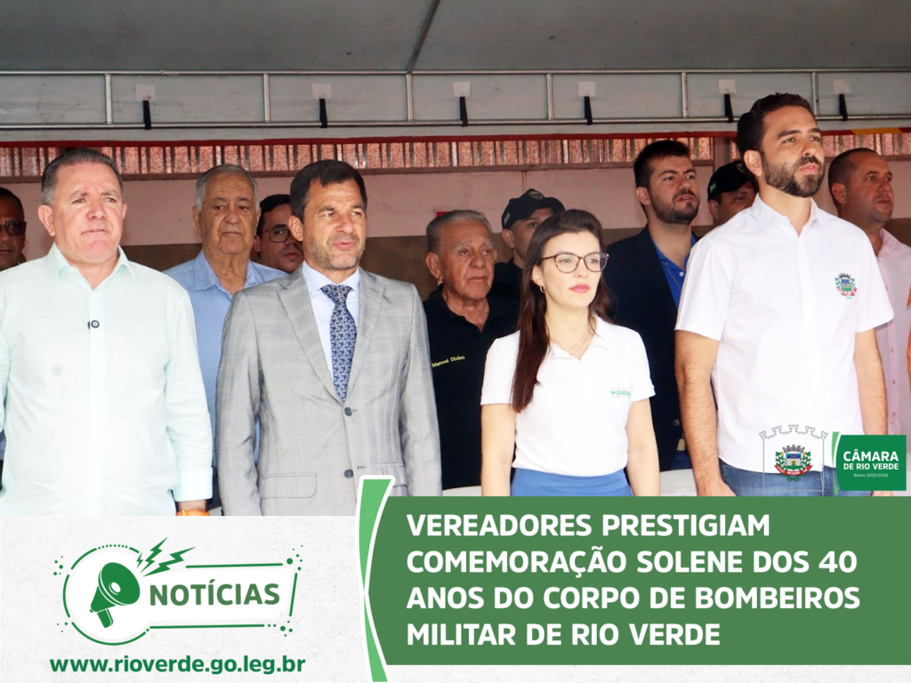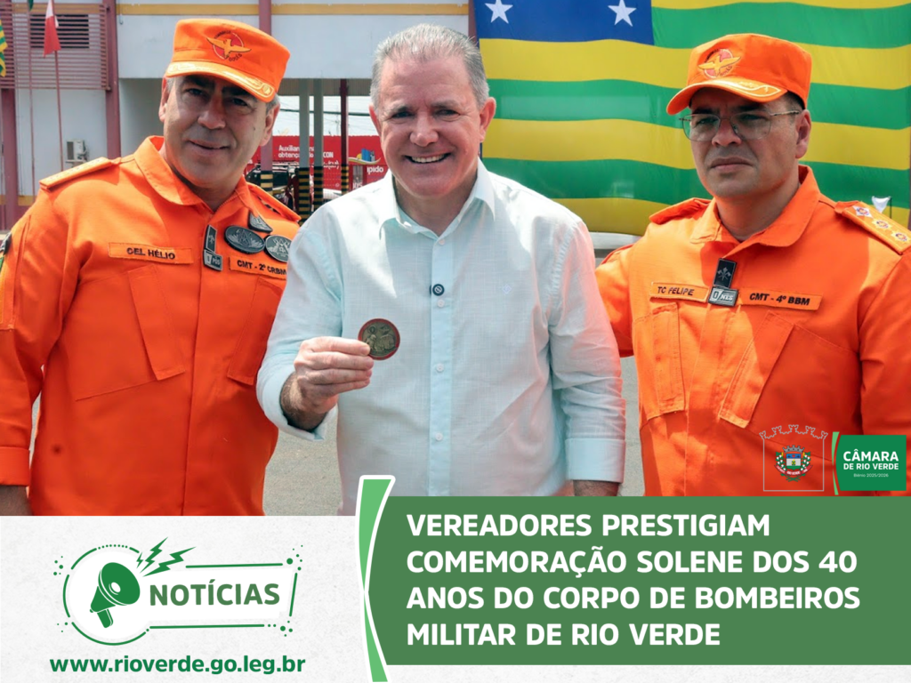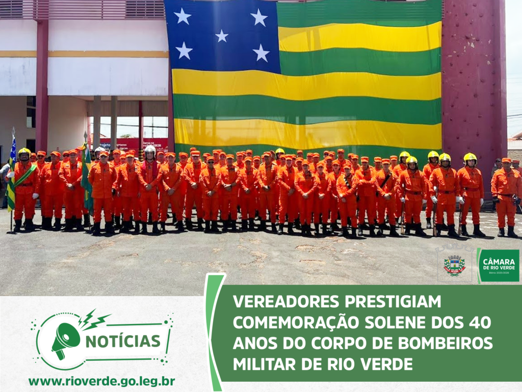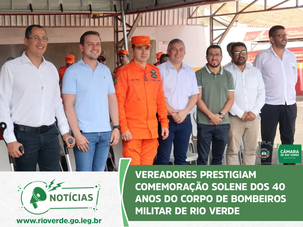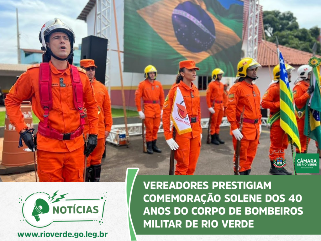 A Câmara Municipal de Rio Verde marcou presença na solenidade que celebrou os 40 anos de atuação do Corpo de Bombeiros Militar no município. O evento, realizado no quartel do 4° Batalhão, reuniu autoridades civis e militares para homenagear a história, os veteranos e o compromisso da corporação com a vida.