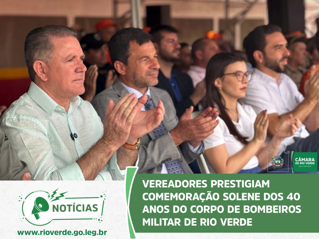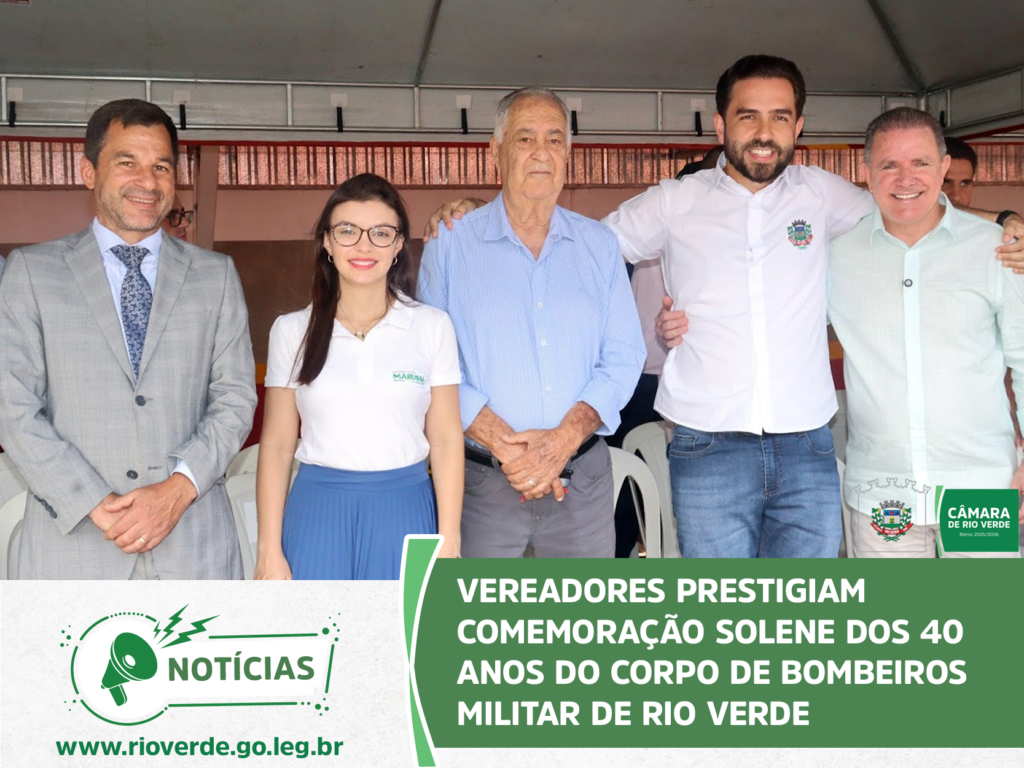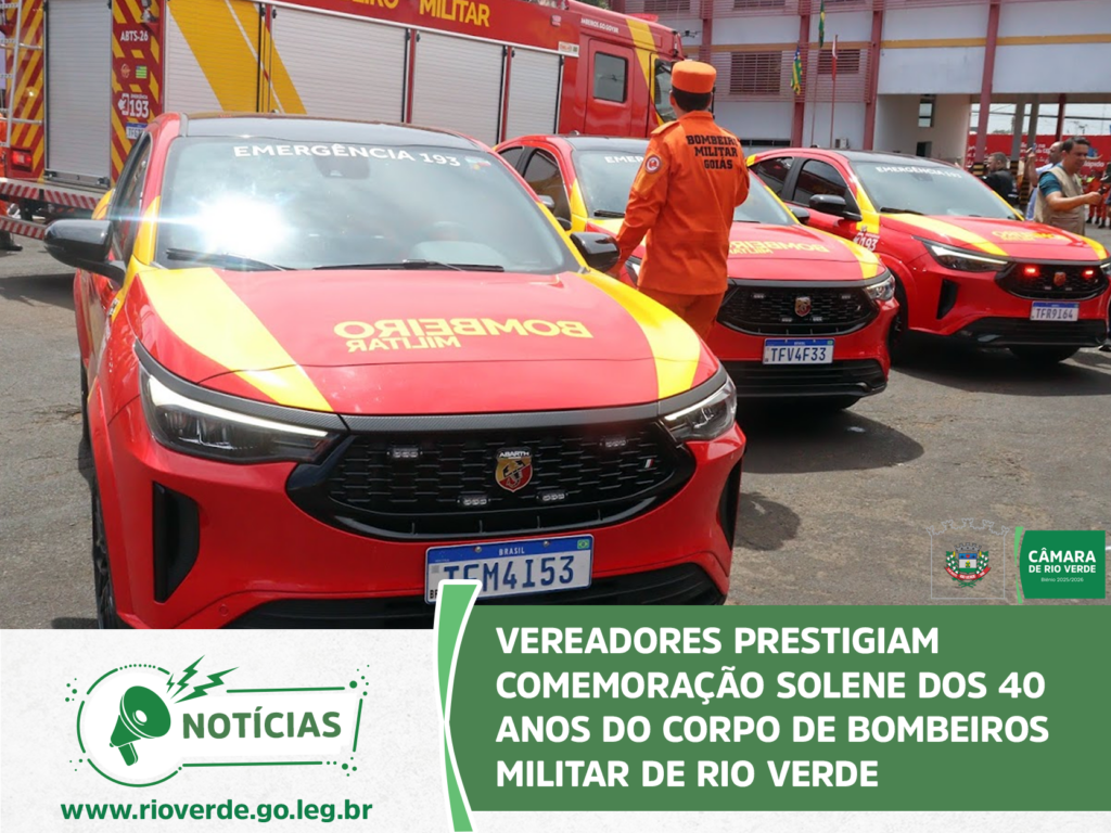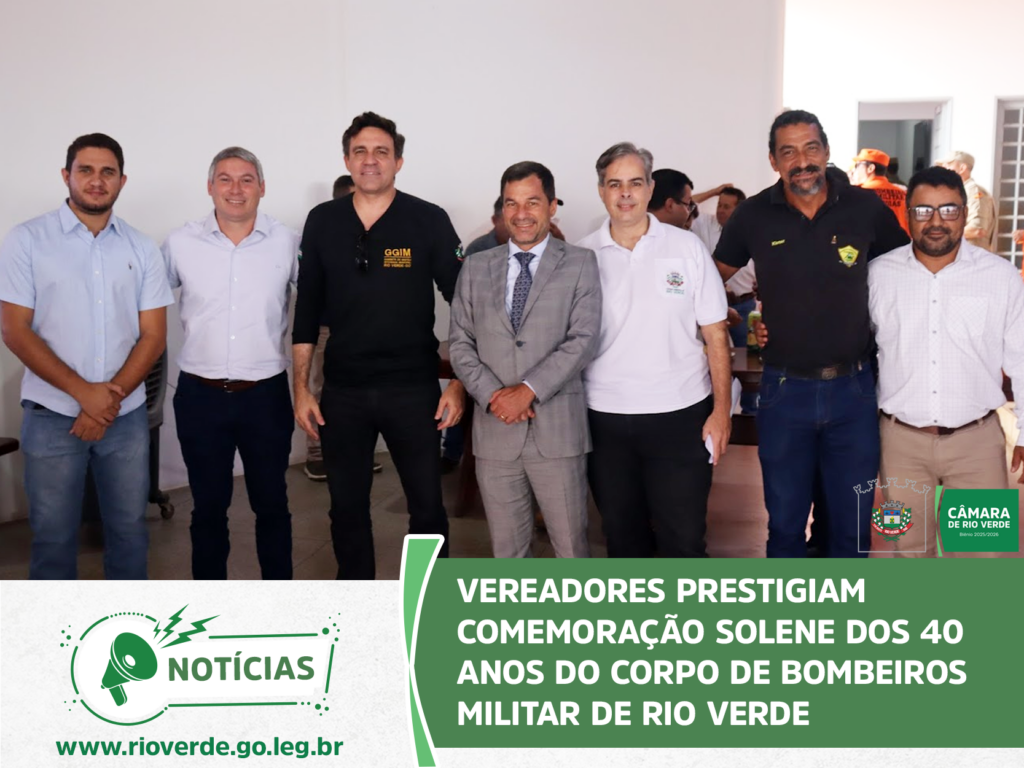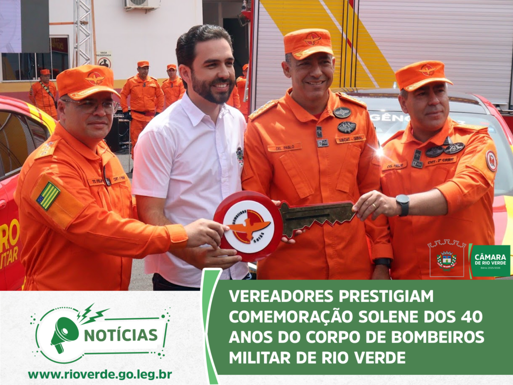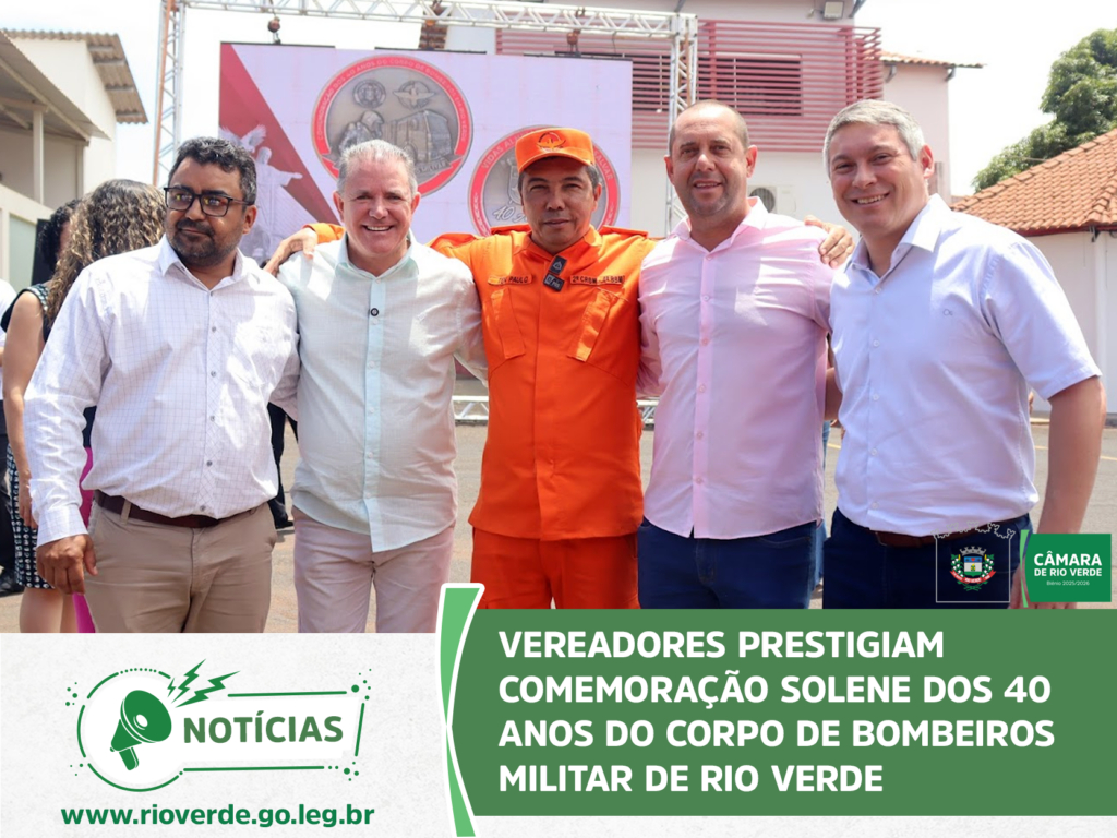 A Câmara Municipal de Rio Verde marcou presença na solenidade que celebrou os 40 anos de atuação do Corpo de Bombeiros Militar no município. O evento, realizado no quartel do 4° Batalhão, reuniu autoridades civis e militares para homenagear a história, os veteranos e o compromisso da corporação com a vida.
